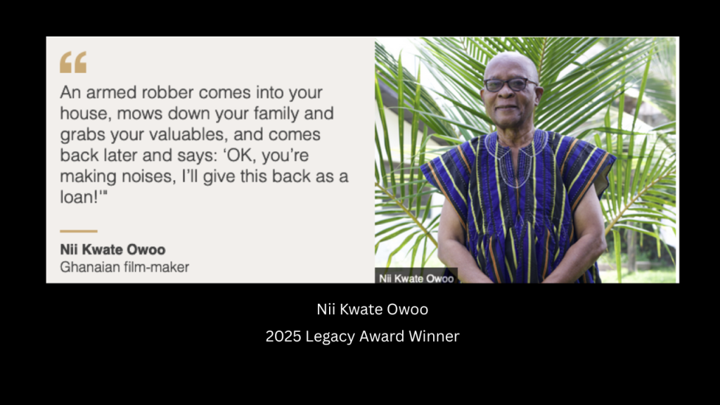 Nii Kwate Owoo was present the Legacy Award 2025 for his lifetime dedication to films that inspire.