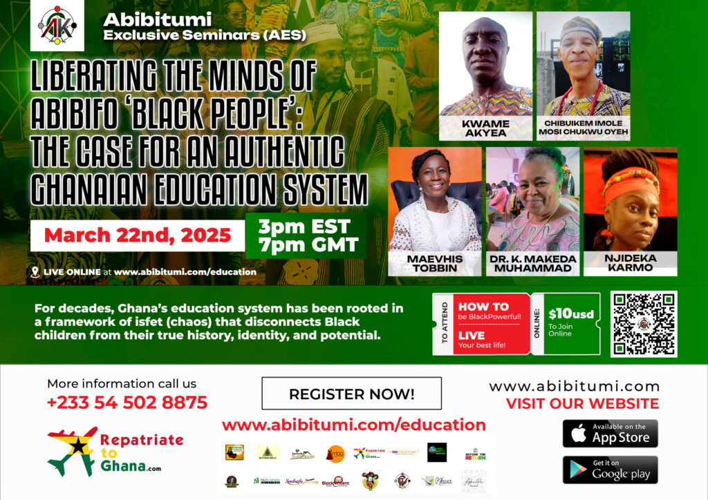 Liberating the Minds of Abibifoɔ ‘Black People’: The Case for an Authentic Ghanaian Education System 📅 Date: March 22nd, 2025⏰ Time: 3 PM EST |…