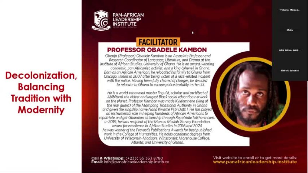 Traditional Rulership and the Question of Political Economy – What Originates with US and Benefits Us on Our Own T.E.R.M.S. In this discussion Ɔbenfo (Prof.) Obadele Kambon discusses traditional and modern practices that have a direct relationship and impact on our indigenous economy and what role our traditional rulers play in supporting its growth.