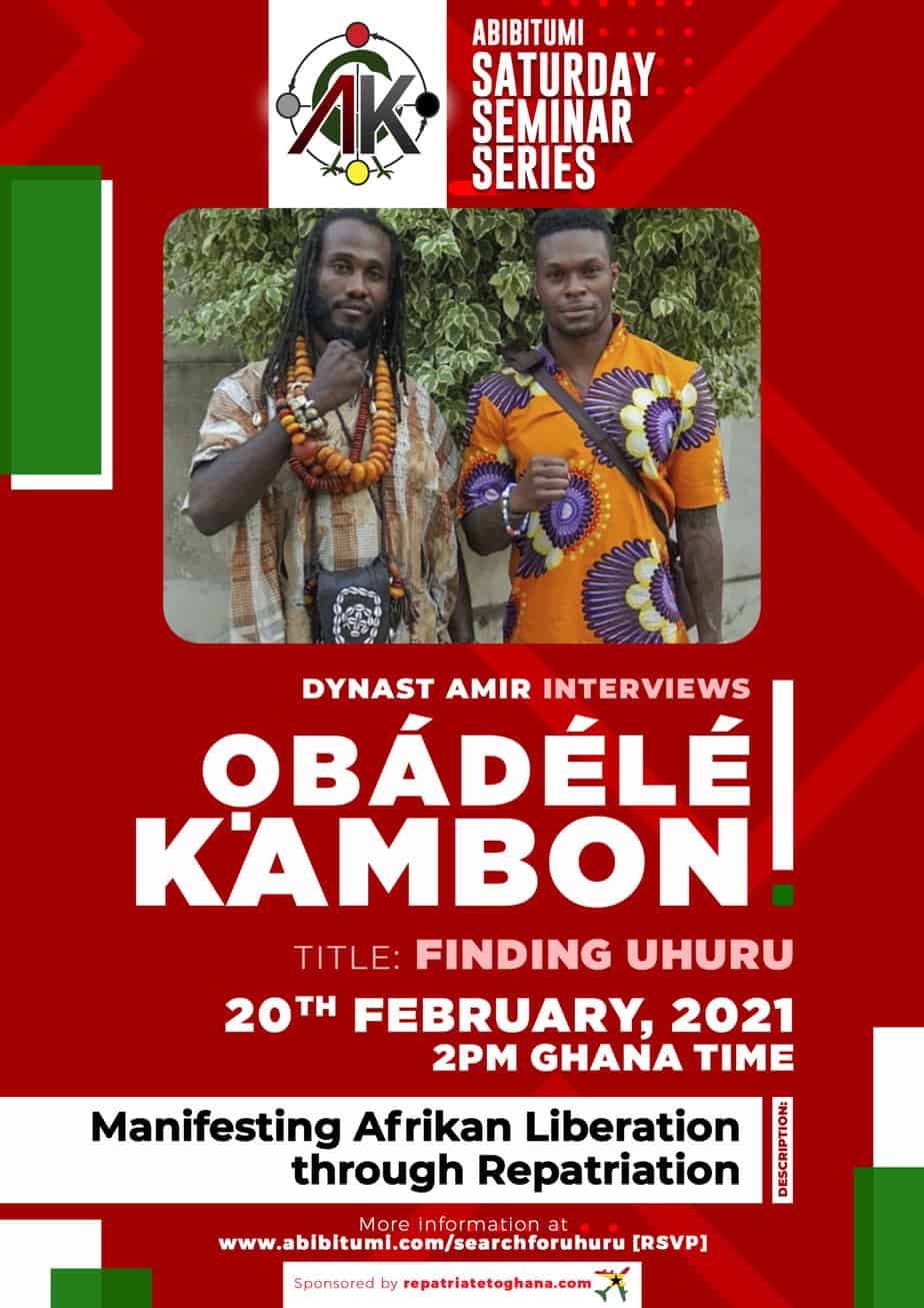 If you missed it live, it’s not too late to experience one of the most BlackPowerful interviews by Okunini Ọbádélé Kambon in recent memory. Dynast Amir came with it with pointed and hard-hitting questions and Okunini Kambon hit back with full force. This interview touched on points such as how repatriation must happen in all areas of human activity, not just physical as well as the distinction between free to vs. free from. This special interview charts the course of the NEW Abibitumi Saturday Seminar Series that will be a staple of your weekend food for thought and action for a long time to come. It was truly a lively and transformative interview on how we can move from the virtual talks to manifesting Afrikan Liberation through Repatriation as a step in the process. Purchase it now and contribute to building infrastructure and restoring Kmt, the land of Black people!