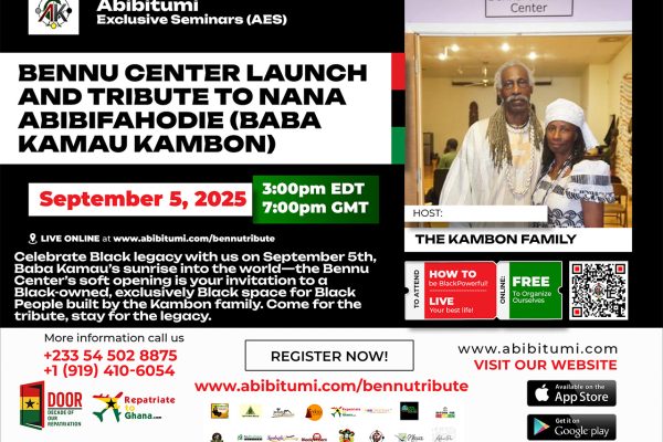 Celebrate Black Legacy at the Bennu Center! Join us on September 5, 2025 for a powerful soft opening of the Bennu Center—a sacred Black-owned, exclusively … Continue reading Bennu Center Launch and Tribute to Nana Abibifahodie (Baba Kamau Kambon)