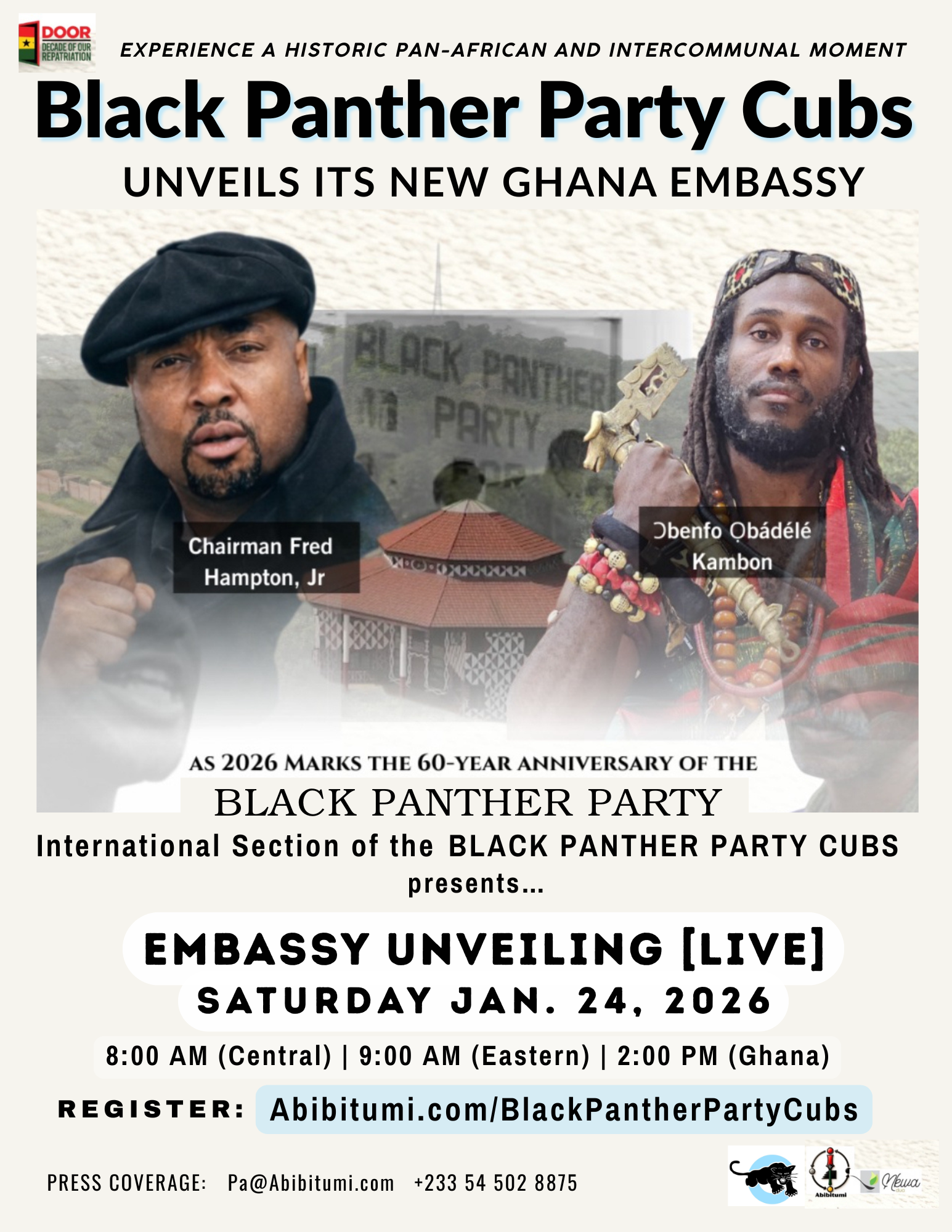 ![Black Panther Party Cubs Unveils Its New Ghana Embassy — Embassy Unveiling [REPLAY]](https://media.abibitumi.com/wp-content/uploads/2026/01/23053154/Embassy-BPPC-1.png)