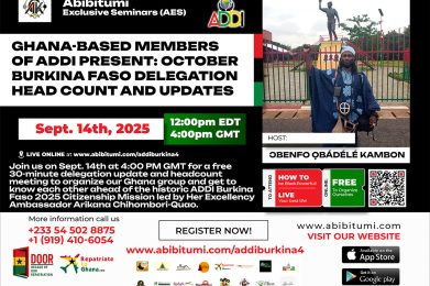 Join us on August 24th, 2025 (4:00–4:30 PM GMT) for a free online delegation update and headcount meeting for the Burkina Faso 2025 Mission Trip. This session will help the Ghana delegation organize, connect, and prepare together ahead of this historic citizenship journey.