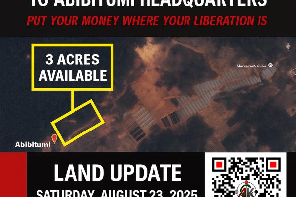 Prime land opportunity next to Abibitumi Headquarters in Ghana — secure your 100×70 plot for $10,000 and invest in building a strong, liberated Black community.