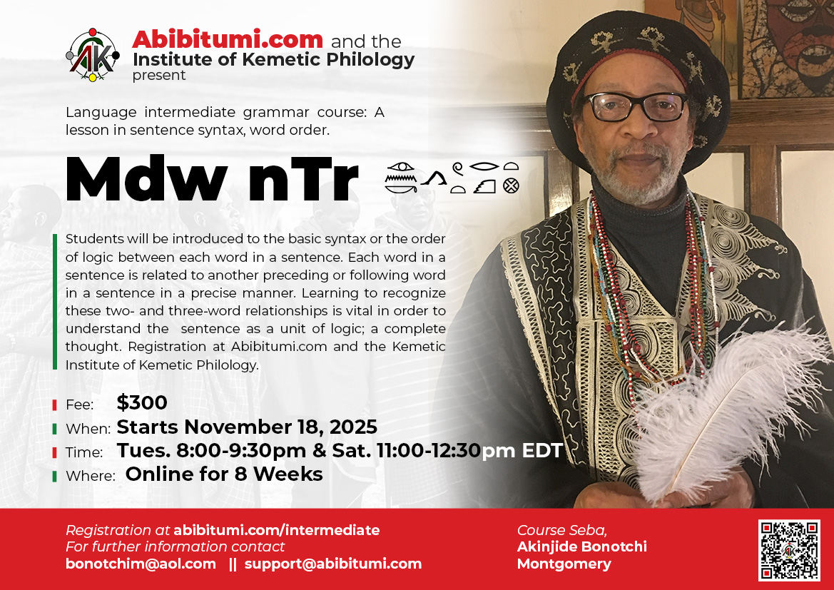 Registration at Abibitumi.com and the Kemetic Institute of Kemetic Philology.