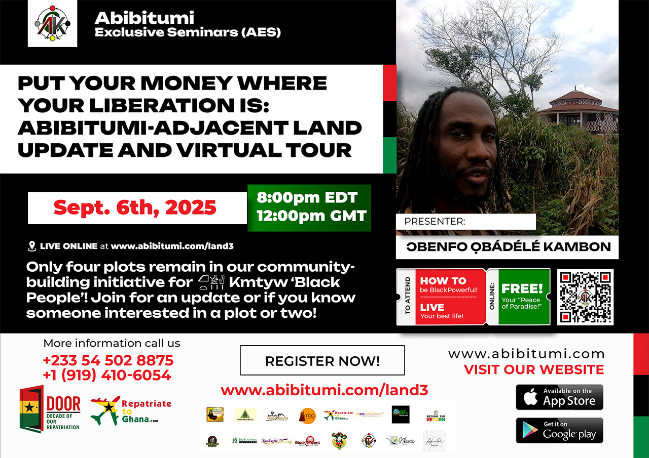 On September 6, 2025, we revealed the latest developments on securing land directly in front of Abibitumi Headquarters in Akuapem Mampong, Ghana—an opportunity to build a thriving, self-sustaining community of like-minded Kmtyw ‘Black People’ committed to Abibifahodie (Black Liberation).