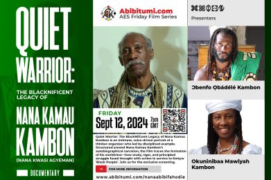 $10 screening — September 13, 7:00 PM GMT / 3:00 PM EDT. An intimate, voice-driven documentary tracing how Nana Kamau Kambon fused study, rigor, and principled struggle into disciplined action in service to Kmtyw ‘Black People’. Presented by Ɔbenfo Ọbádélé Kambon and Okuninibaa Mawiyah Kambon.
