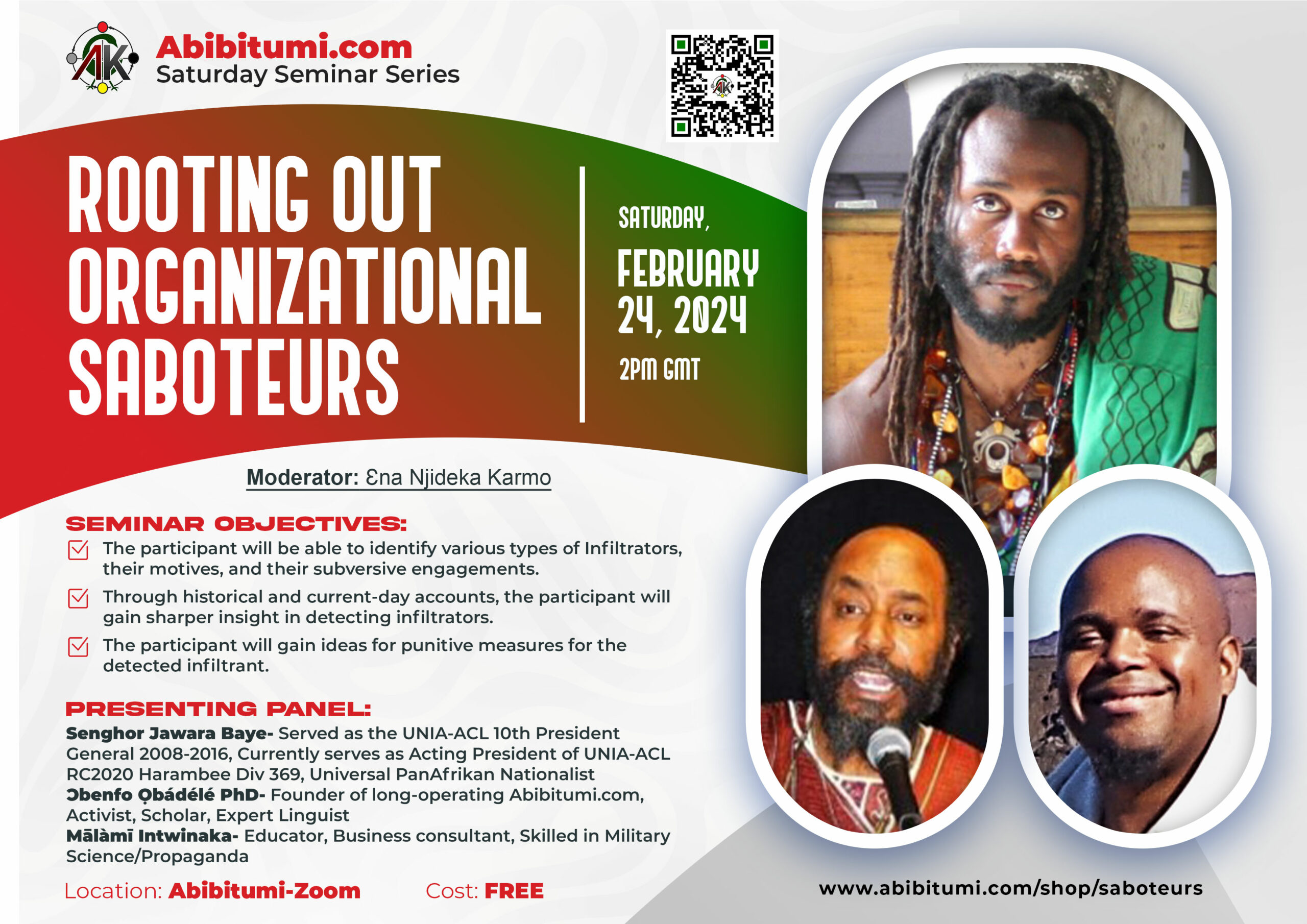 Description: This is a solution-oriented panel discussion that will cover critical information regarding Informants/Saboteurs in Afrikan organizations.